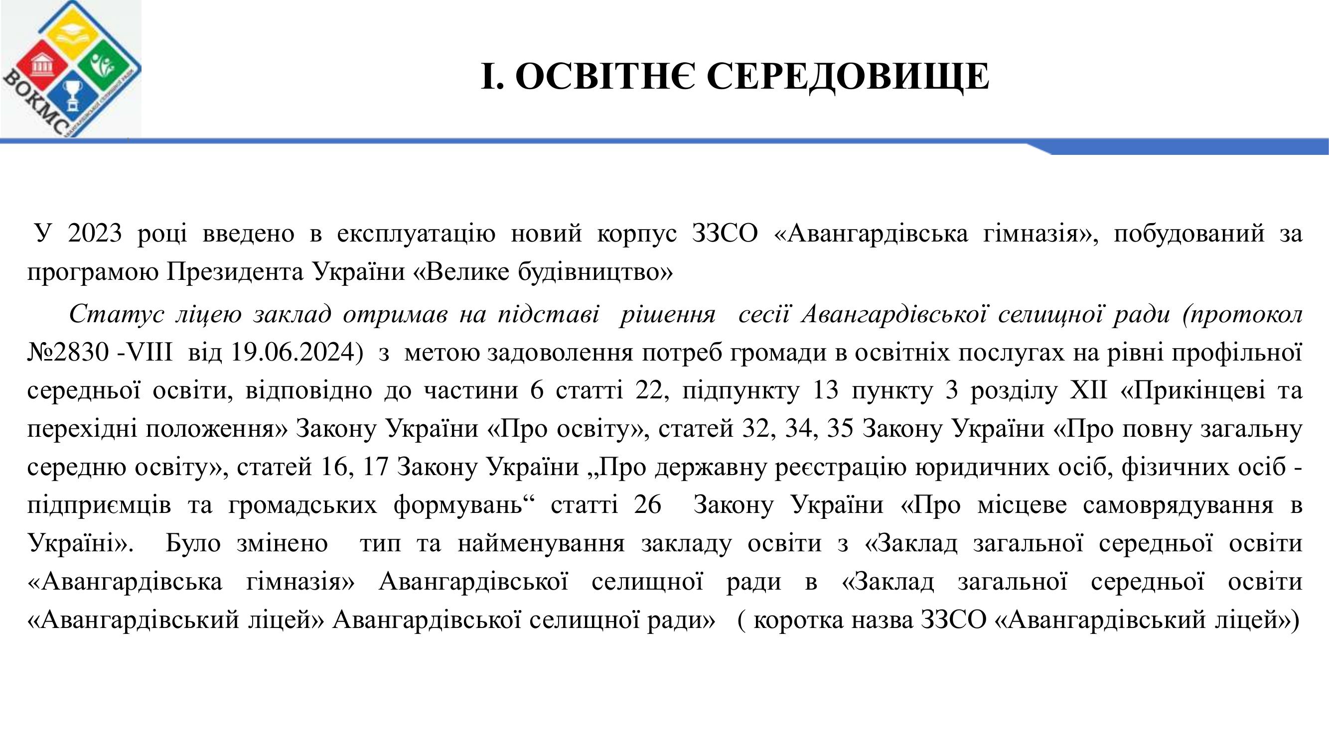 ЗЗСО "Авангардівський ліцей" Авангардівської селищної ради